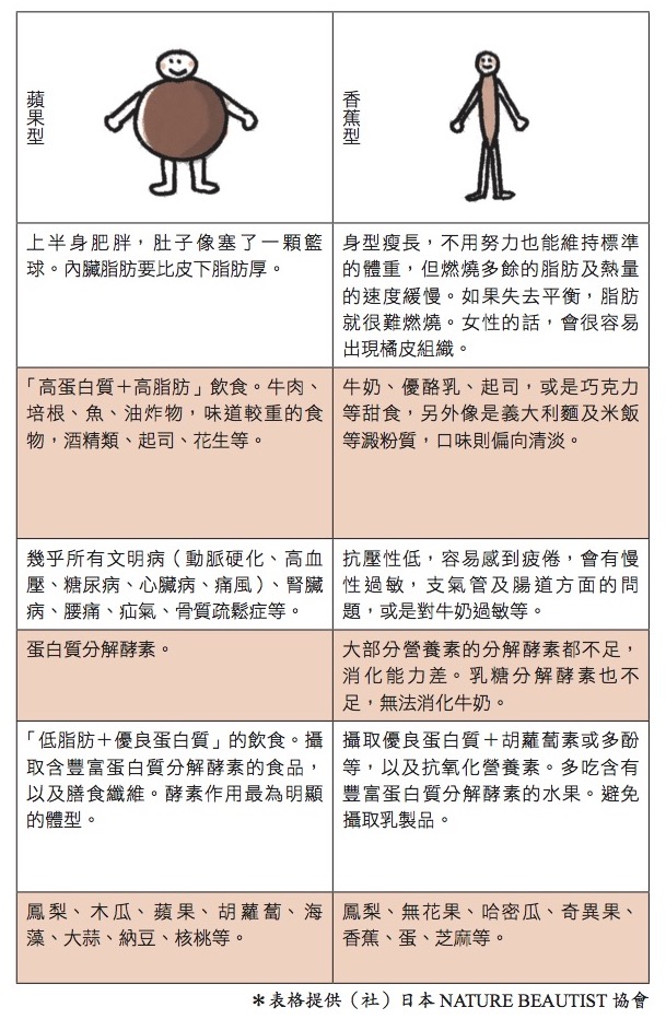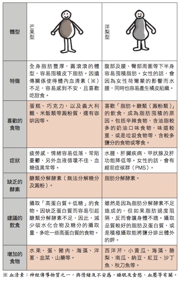 從體型及身體特徵可以知道酵素是否不足。下一頁將做詳細的介紹,請務必檢測一 下。