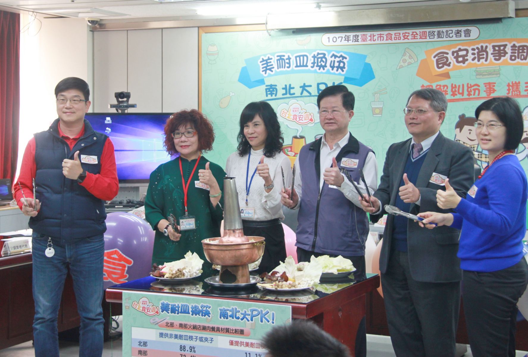 台北市衛生局近年輔導火鍋業者改採CNS304級以上不鏽鋼夾子,或非美耐皿筷子給消費者使用,並於106年底委託台灣檢驗科技股份有限公司,針對北部與南部共6個縣市、121家火鍋店進行抽查。
