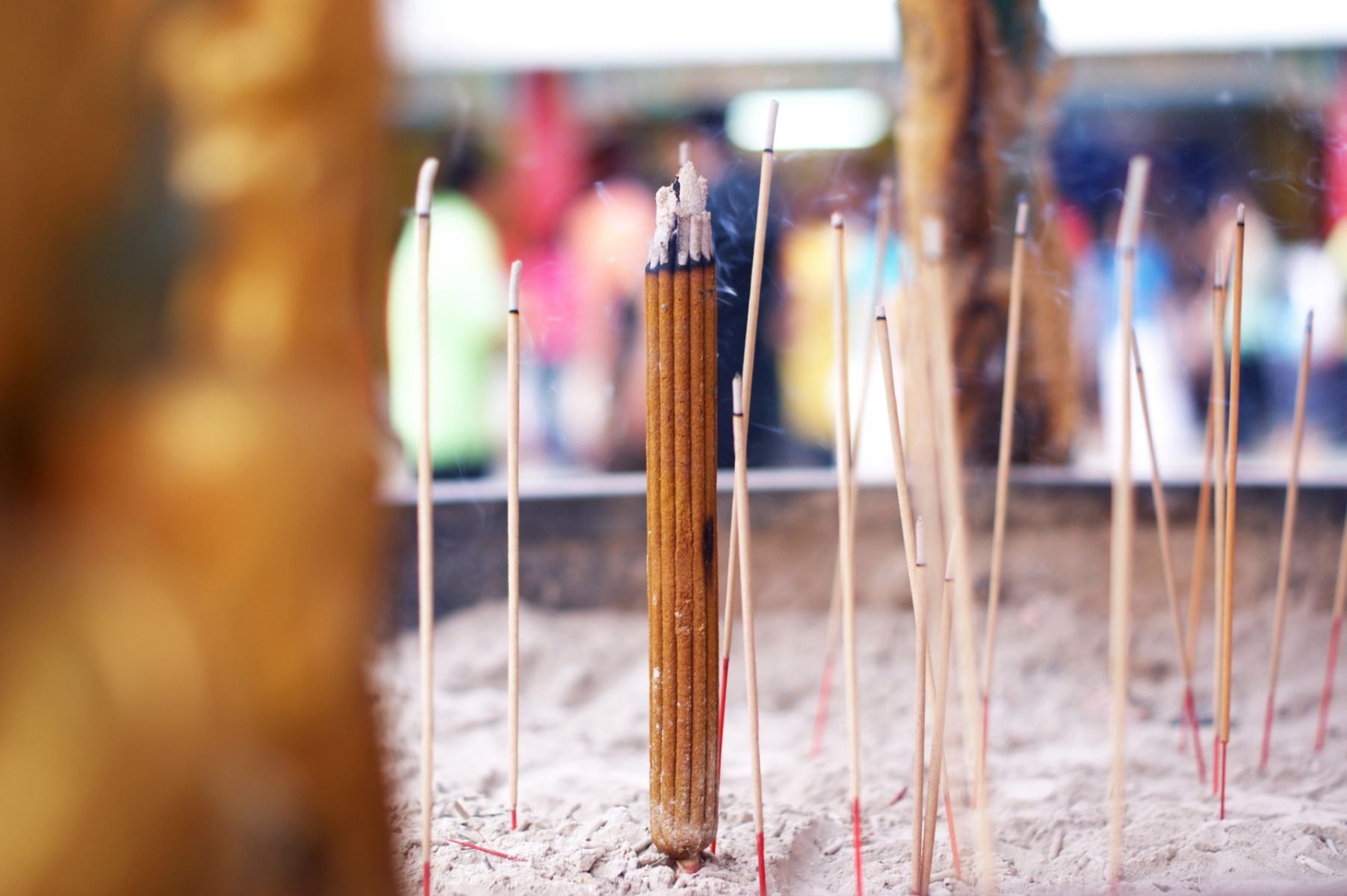 我幫她點好三炷香,她恭敬地站在廟門前,手持三炷香,口中念念有詞(不外乎就是請神明保平安之類的話)。