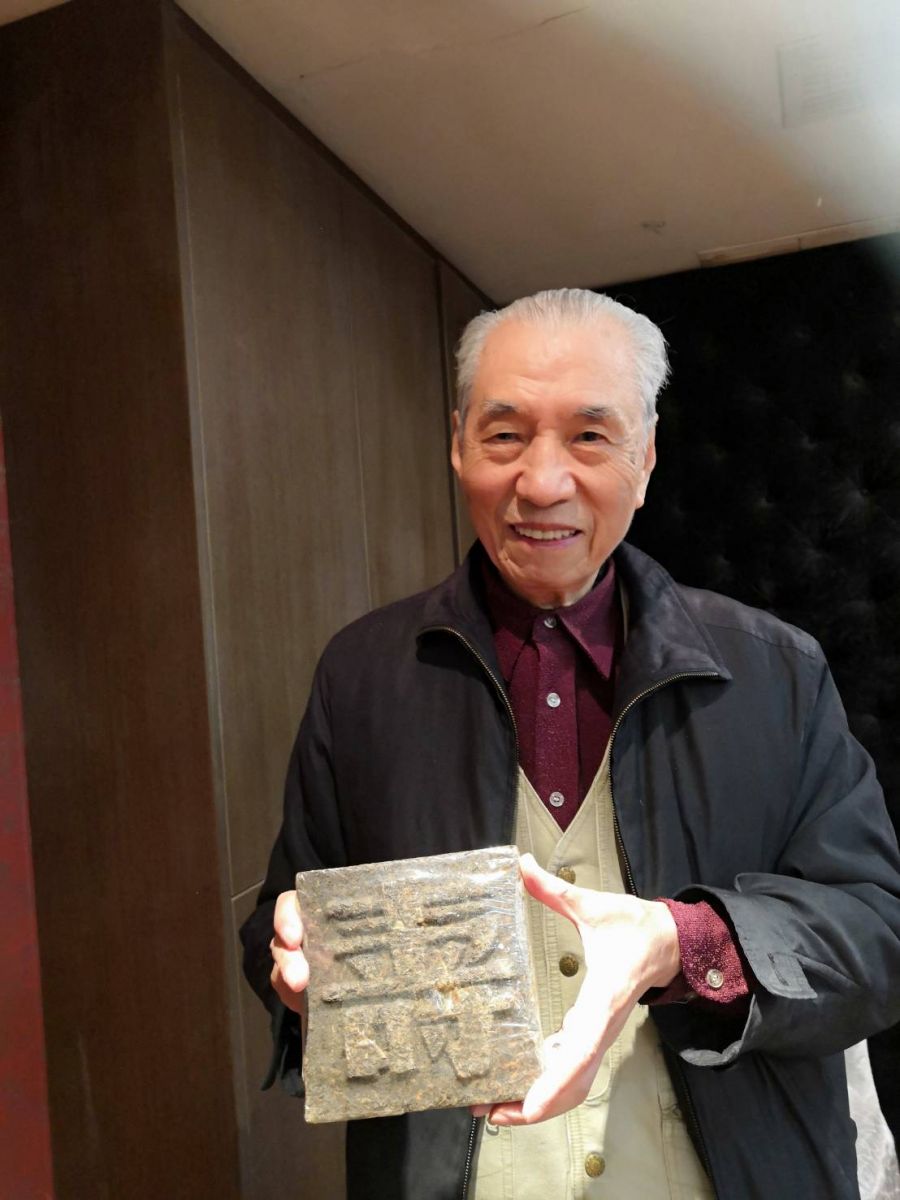 ▲老長官手上這片茶是個「壽」字 ,和他今年九十大壽 ,恰恰好能相得益彰。