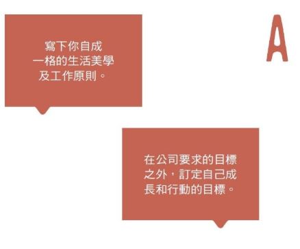 其次,你要將自我肯定感的基礎放在自己的行動目標、價值觀、原則、使命等,以自己為軸心、可以自己控制的事情上,而不是放在別人或工作成果等容易變動的事物之上。