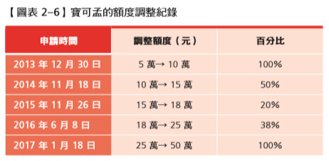 要調降額度,非常簡單,只要打個電話就可以從50萬調到2萬元;但要從2萬元回到50萬元,那可謂「離別河邊綰柳條,千山萬水玉人遙」,這條路得重頭走過。回到50萬元額度,你得奮戰多少年?