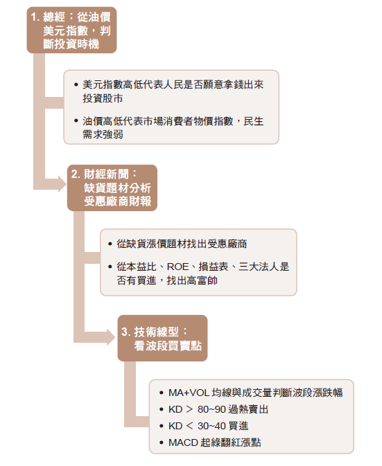 圖表3-1 波段投資法的三步驟(圖片來源:《我用波段投資法,4年賺4千萬》)