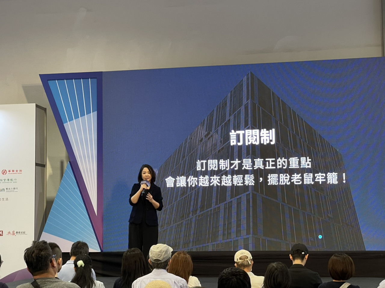 上圖:藍太太以「包租代管×訂閱制:下一個十年的穩定現金流模式」為主題登台演說,為金融博覽會史上第一個講述包租代管議題的專家。