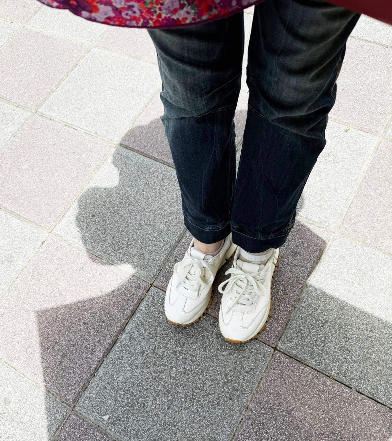 一瞬間,我決定將兩隻材質相近、卻明顯不成對的襪子套上,再配一雙白色運動鞋,就這樣出門赴約。
