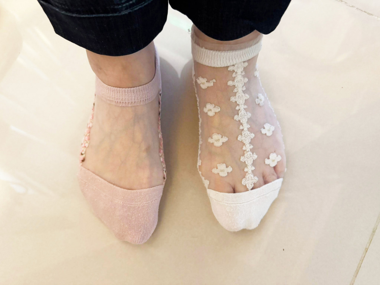▲沈春華某日急著出門,套上兩隻材質相近、卻明顯不成對的襪子。(圖/翻攝自沈春華 Live Show臉書)