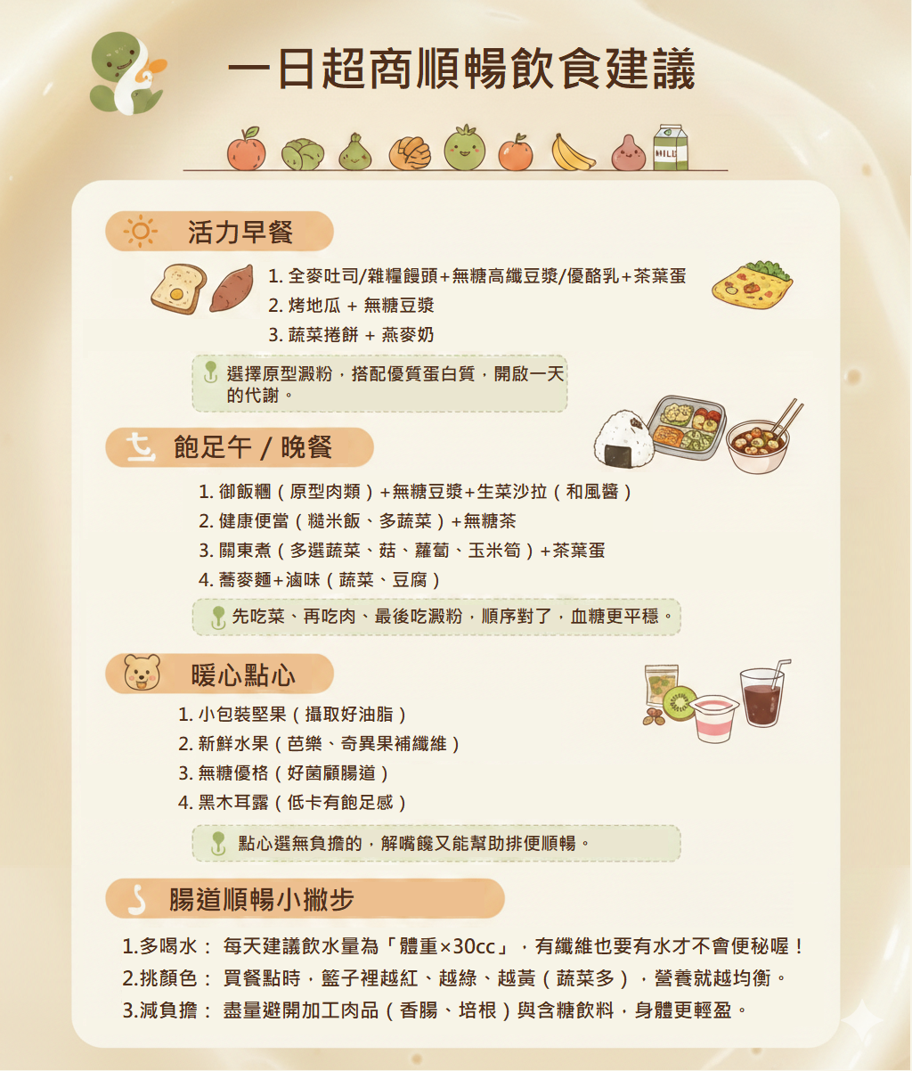 針對這類「腹」債累積的問題,朱姵穎提出「順暢三部曲」,協助忙碌的外食族逐步找回腸道節奏,打造不塞車的腸道:
