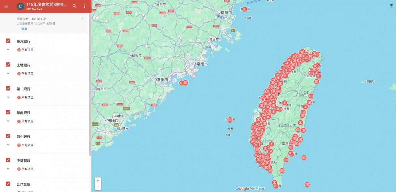 Google新鈔地圖,全台455個一鍵查