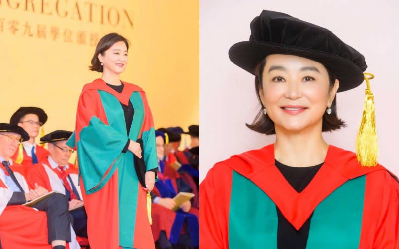 ▲林青霞2023年獲頒香港大學榮譽博士,為因戰亂而無法升學的母親圓夢。