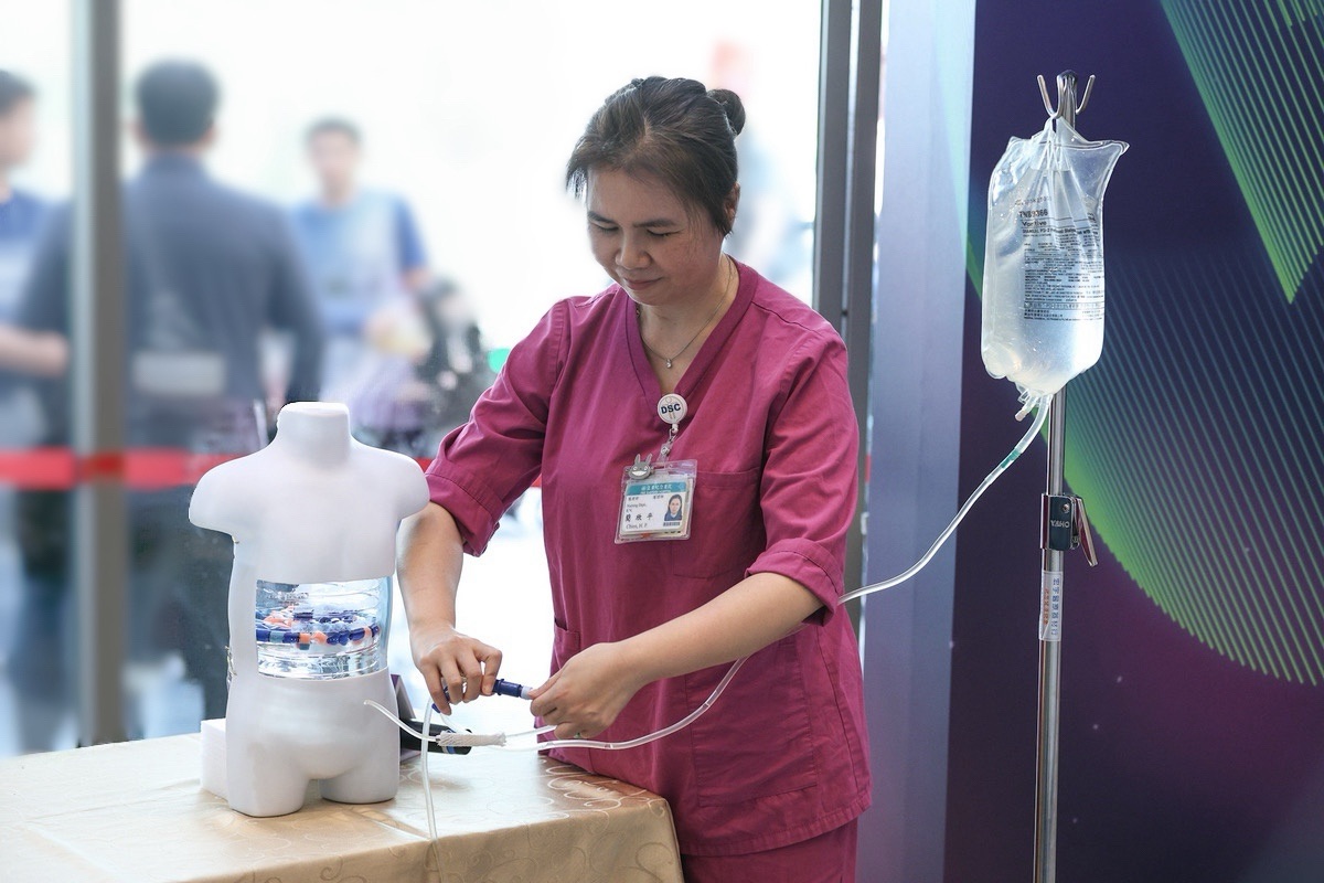 ▲亞東醫院護理團隊開發「出奇治腎」透析教學模型,將居家透析流程具象化,協助病友反覆練習,降低感染疑慮並提升在家操作信心。
